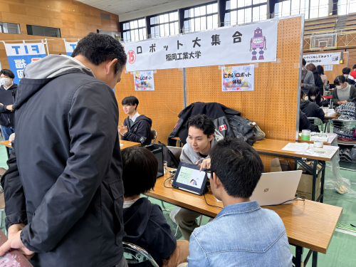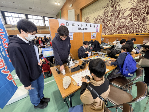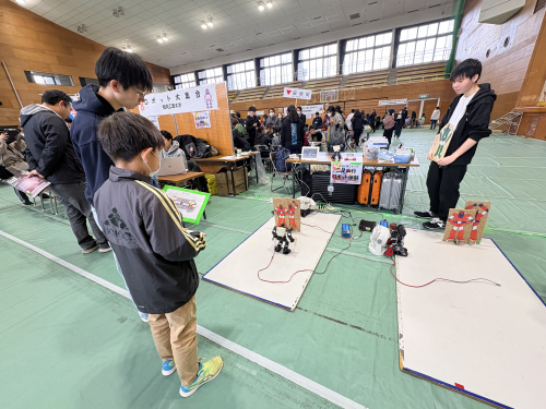 二足歩行ロボット、i-STEAM教育教材開発、においロボットの作製の3つのプロジェクトが、においロボットのしくみを説明したり、アームロボットを楽しく操作体験できるように工夫したり、体験だけでなくロボットバトルを披露したりして盛り上げました。