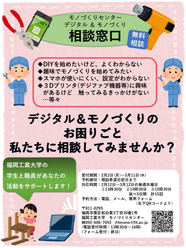 モノづくりセンターでは近隣にお住まいの皆様を対象に「デジタル&モノづくり相談窓口」を開設いたします。