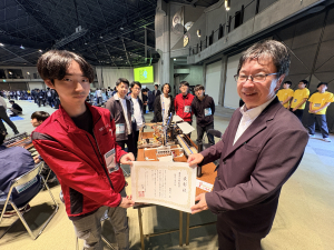 9月20日(土)~21日(日)「第15回キャチロボバトルコンテスト」(京都府:国立京都国際会館イベントホール)が開催され、モノづくりセンター ロボコンプロジェクトにて開発、製作した自作ロボットと共に6名の学生が出場し、結果は95チーム中3位タイおよび「審査員特別賞」受賞と好成績を収めました。 【機体名:繊龍V※カーボン繊維を多く用い、龍のような形をしたロボットで、Victoryの意を込め命名】